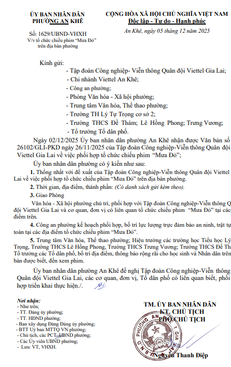 Nhà văn hóa tổ 1 Thành An, phường An Khê (Từ 18h30 đến 20h30 ngày 16/12/2025).